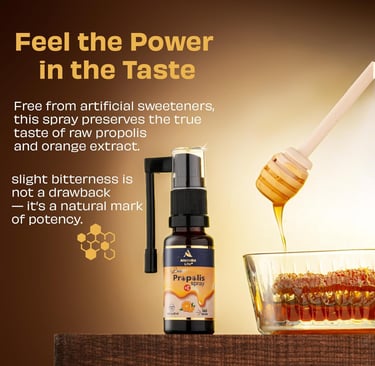 Great product but extremely bitter. I have been using propolis sprays for more than 10 years and this one specifically by Anatolia has to be the most bitter one I ever tried because it does not have any artificial sweetness. Please make sure you are fully aware of this before ordering. It helps me when I have any throat issues like the symptoms of a cold and is very effective with pain in my throat. I also use it occasionally for my gums and even for skin irritations. Overall, a great wellness product that has many uses.